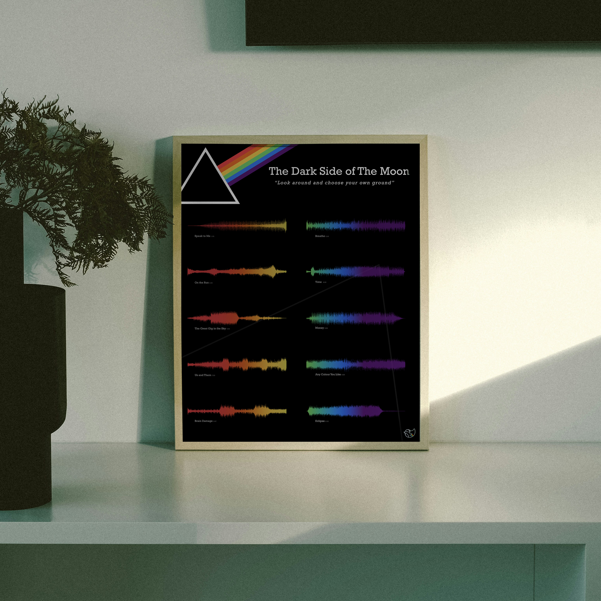 This print is inspired by "Dark Side Of The Moon", an album by Pink Floyd. The poster features an inspired style that pays homage to the album, but can still complement any room. The poster comes with a quote on it, but if you would like to change it, message me on Instagram with your order # and quote.