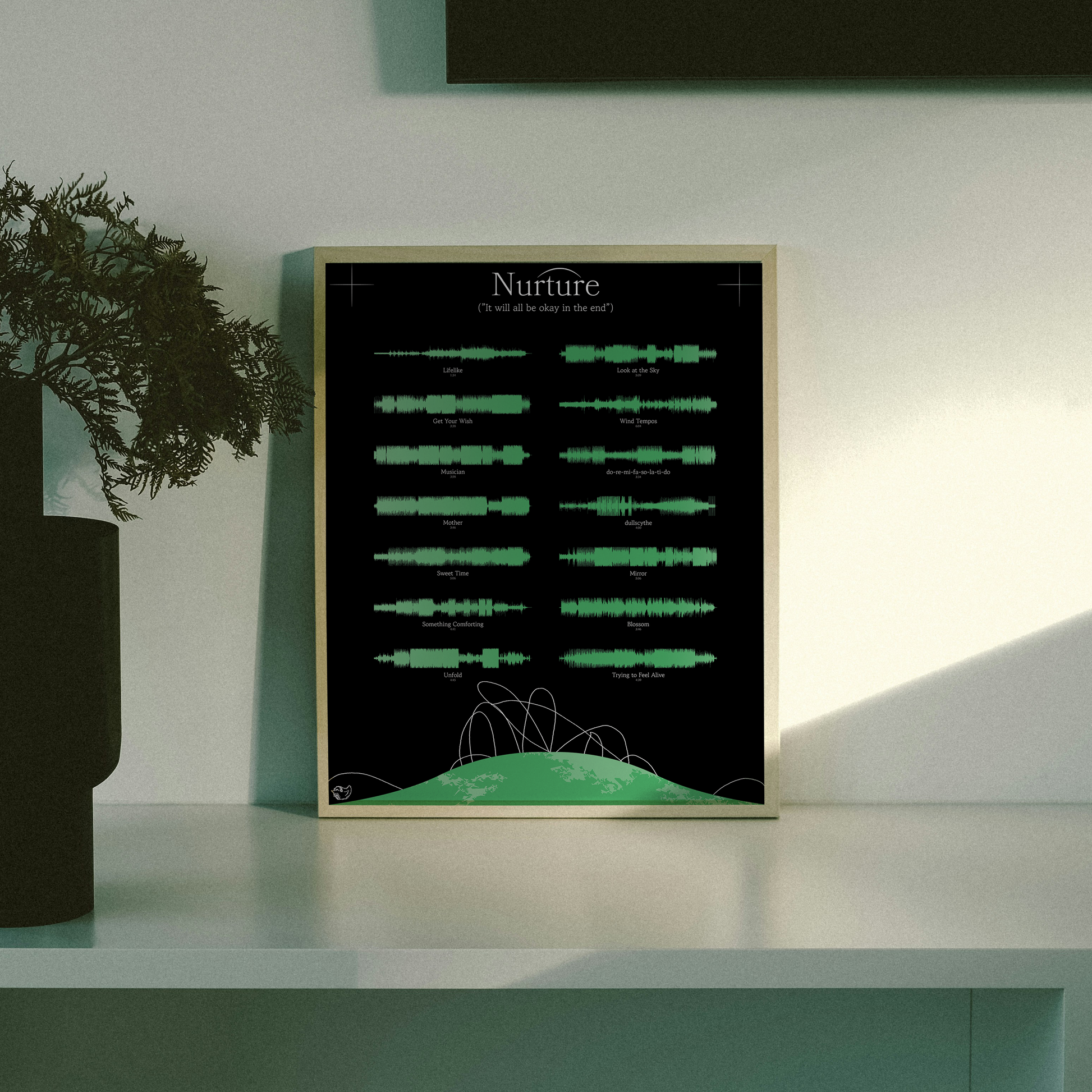 This print is inspired by "Nurture", an album by Porter Robinson. The poster features an inspired style that pays homage to the album, but can still complement any room. The poster comes with a quote on it, but if you would like to change it, message me on Instagram with your order # and quote.